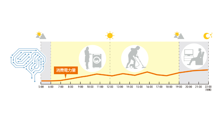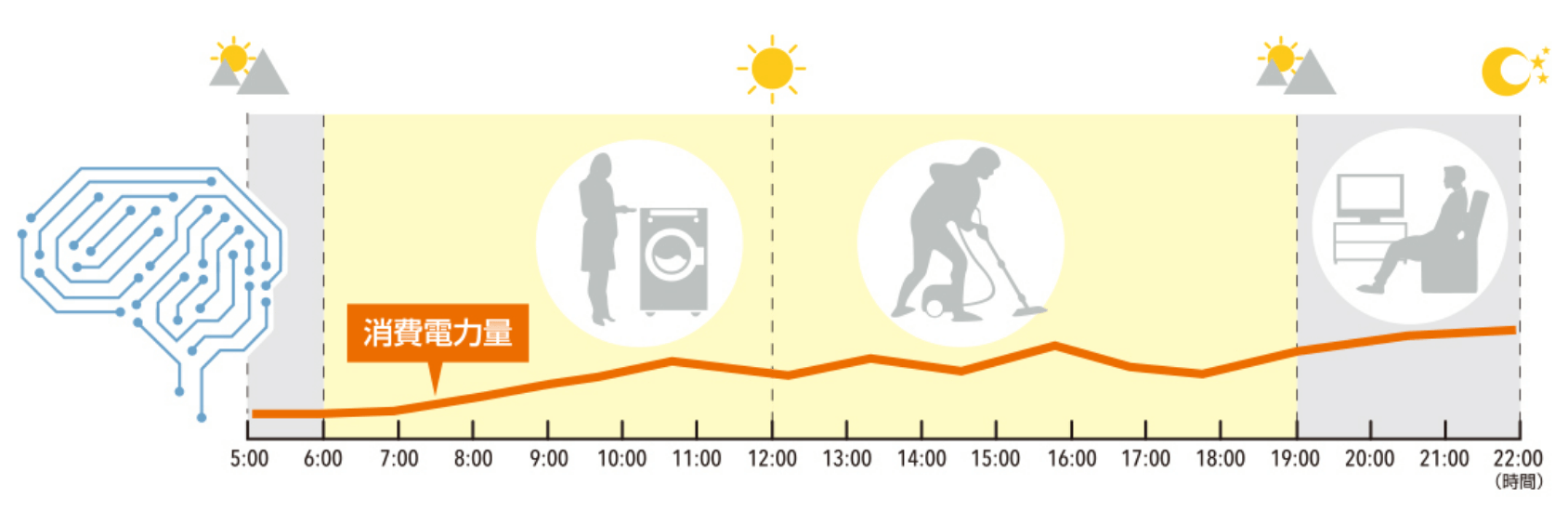 「GridShare」は日々の電気の使われ方を学習して、曜日や時間帯ごとの傾向を把握します。それを基に翌日に必要な電力量を予測します。