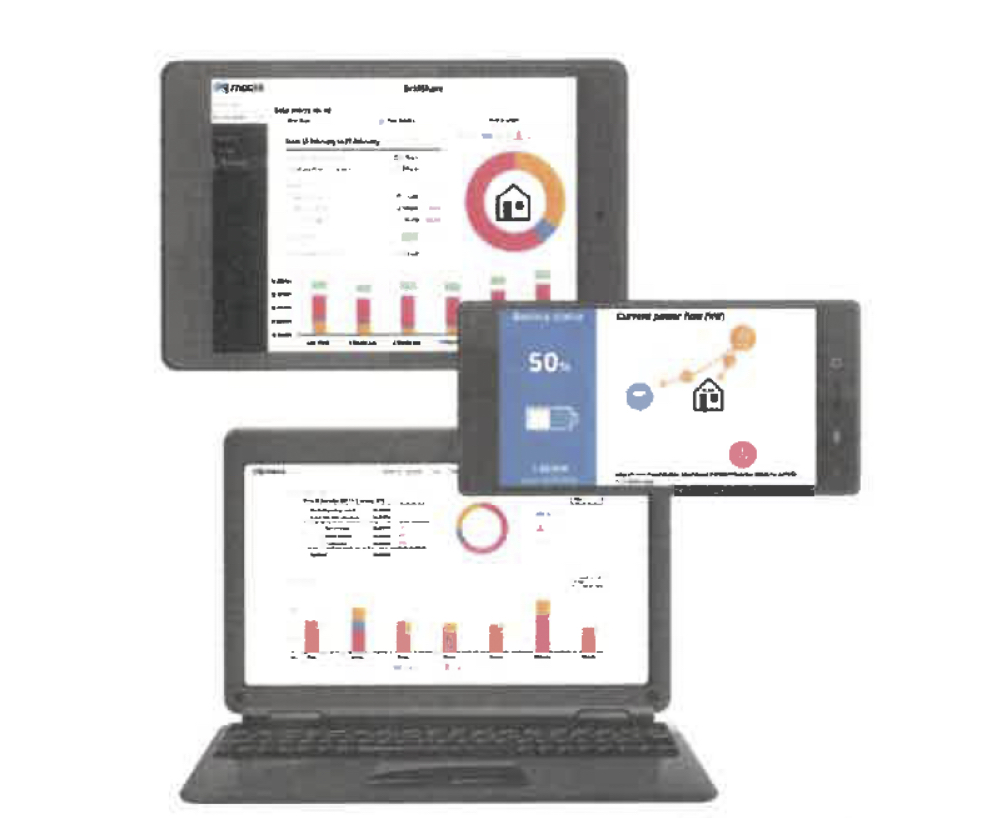 スマートフォンやタブレット、パソコンなどにより、お使いになられている「Smart Star L」の充電・放電の状況や、電気使用量・購入電力量の履歴を「マイページ」で確認することができます。
