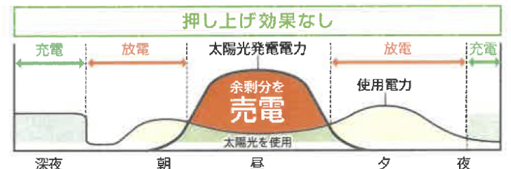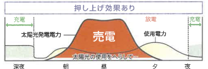 昼間に使用する電気は、太陽光でまかなうから、蓄電池にためた電気を有効活用できます。
